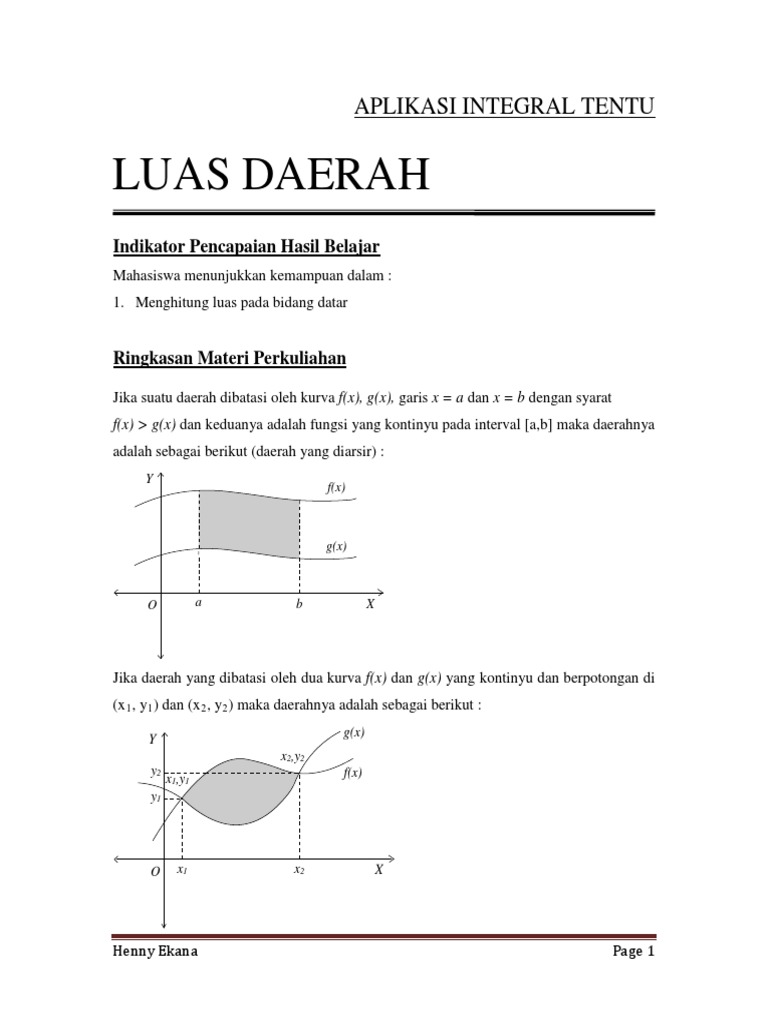 Assalamualaikum wr wb salam sejahatera untuk semuanya. Jika fungsi f terdefinisi pada interval a, b, maka : Jawab misalkan f adalah fungsi yang kontinyu pada selang a, b dan misalkan f adalah anti turunan dari f pada selang tersebut, maka berlaku : Beberapa contoh penerapan tersebut, diantaranya adalah : Perhatikan gambar daerah rata dibawah ini r adalah bidang datar yang dibatasi.